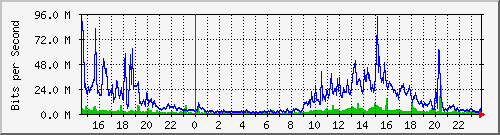 [Μπλέ] Εισερχόμενη Κίνηση - [Πράσινο] Εξερχόμενη Κίνηση - Γράφημα μέσου όρου 5 λεπτών